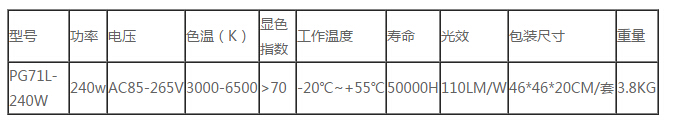 高光效led工礦燈240W技術(shù)參數(shù)