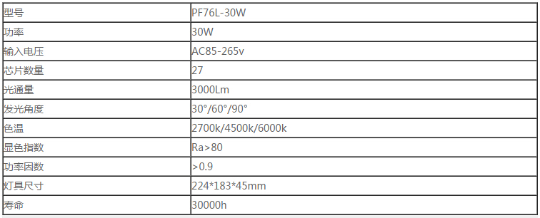 PF76L-30W產(chǎn)品參數(shù):